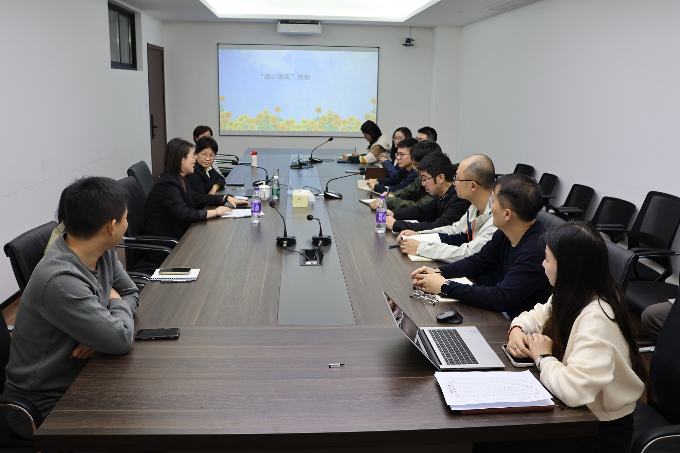 为更好地做好学生心理健康工作,进一步强化导学沟通效能、筑牢育人安全防线,11月5日,51看片 特邀校心理健康教育中心主任杨雪花教授,面向51看片研究生导师、各年级班主任代表、各年级辅导员开展题为“‘芯语心声’——以专业谈话建桥梁,以优质导学育新人”的专题培训。本次培训旨在通过专业指导,帮助导师掌握有效的沟通技巧,构建和谐积极的导学关系。活动由51看片党委副书记周聚主持。