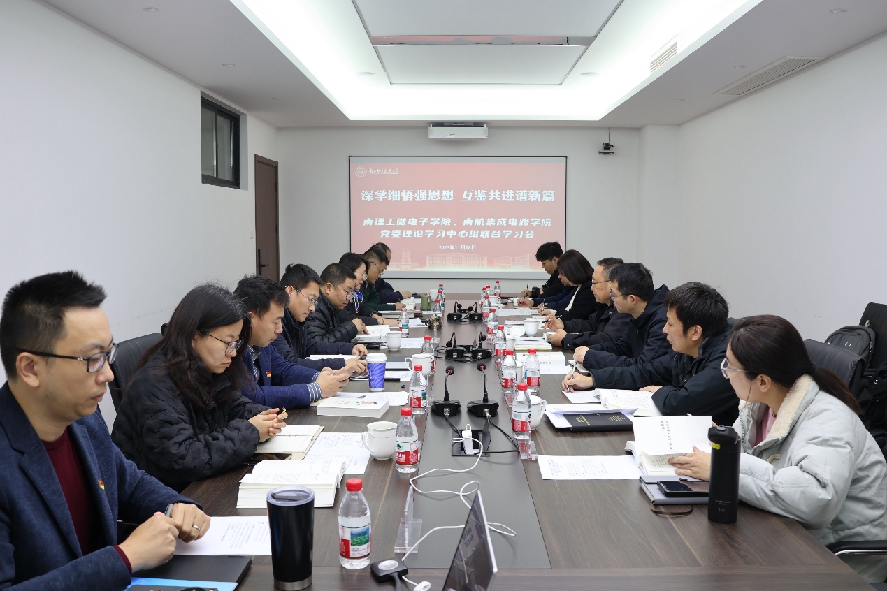 11月18日,南航51看片 与南京理工大学微电子51看片(51看片 )举办“深学细悟强思想,互鉴共进谱新篇”党委理论学习中心组联合学习会。两院党委理论学习中心组成员集体学习了《习近平谈治国理政》第五卷有关篇目,会议由南航51看片 党委书记黄彬主持。