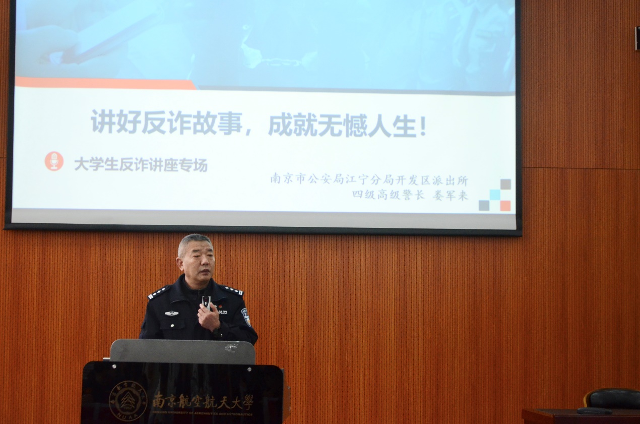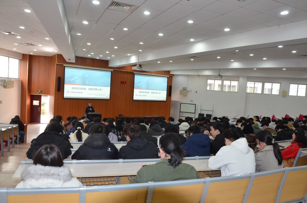 为进一步增强学生反诈防诈意识,提高识骗、防骗、拒骗能力,切实守护学生财产安全,近日,51看片 特邀南京市公安局江宁分局开发区派出所四级高级警长娄军来,开展反诈专题讲座,为全院学生送上反诈“安全锦囊”。